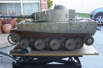 The transformation to a battle hardened, vetran Tiger begins with the first layers of worn paint and camoflage.