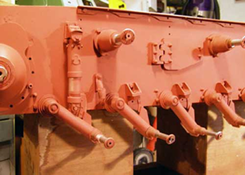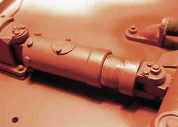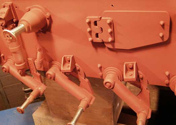 Details are added to the shocks and shock mounts and first coats of red primer are added.