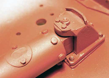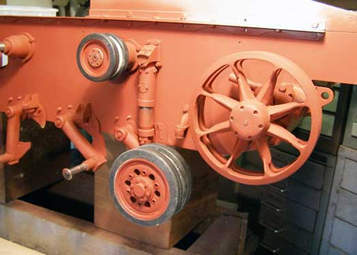 Here is the left wheel after Jeff has reshaped the spokes. Also notice the excellent detail added to the road wheel in the photo below.