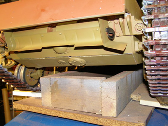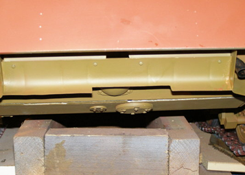 The lower hull assembly gets it's base coat of gelbbraun.