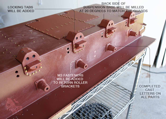 The cast letters and numbers have been added to all the parts. Locking tabs will be added to the mounting bolts for the suspension bases.