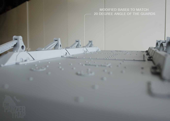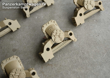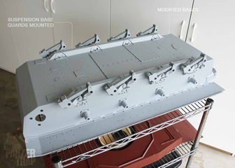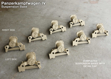 I designed a set of suspension base guards and modified the inside of the kit's suspension bases to match the angle or the guards. The guards will be added to our ever growing Panzer IV parts page. In these photos, the access panels have also been added to the hull floor and the fender flange and welds have been added. Decided to use grey primer from here on out because, for me, it's easier to see details in the lighter color.